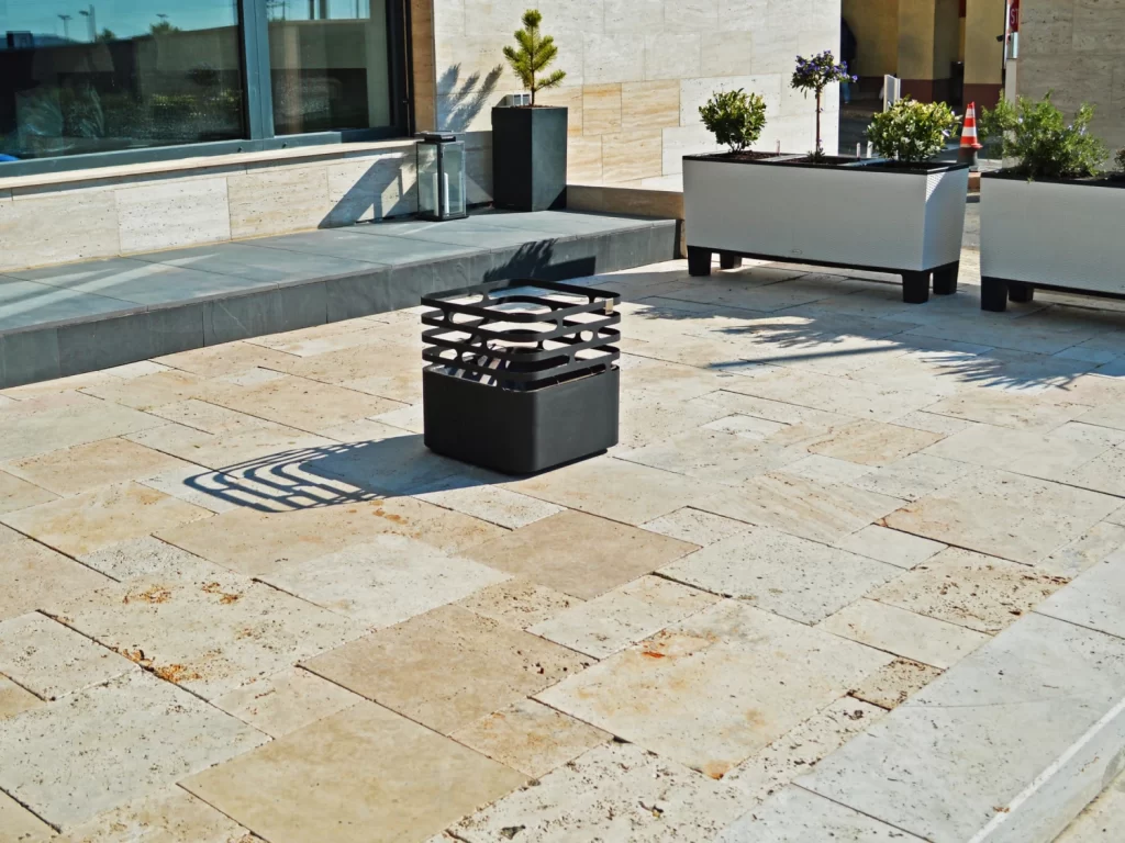 • travertin mészkő alapból érdesebb, de csiszolt verzióban csúszhat, és ha nem fagyálló, repedhet is.