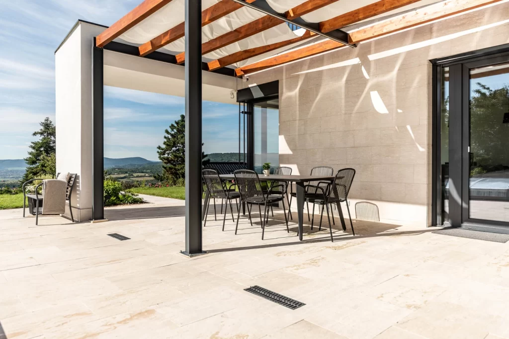 • Mediterrán hangulat, természetesség: Travertin mészkő